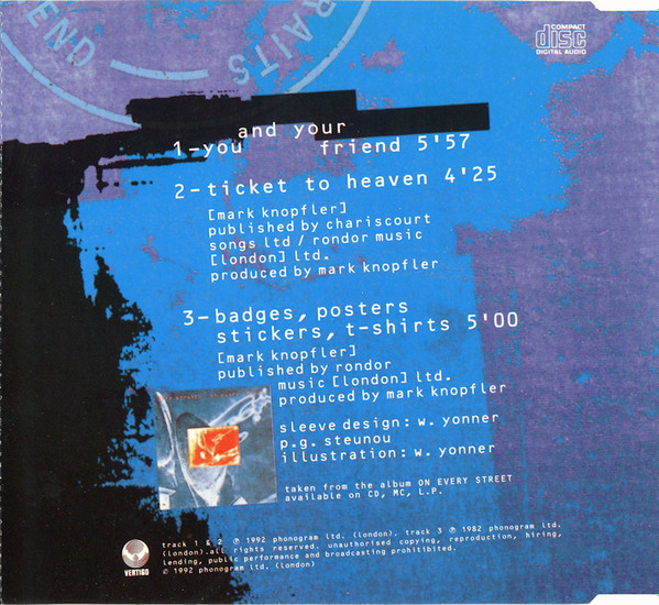 € 49.00 Media: Very Good Plus (VG+)Hoes: Very Good Plus (VG+)Dire Straits – You And Your Friend (CD, Single)