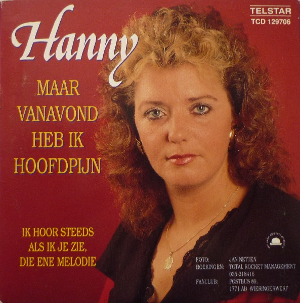 € 5.00 Media: Very Good Plus (VG+)Hoes: Very Good Plus (VG+)Hanny (2) – Maar Vanavond Heb Ik Hoofdpijn (CD, Single)