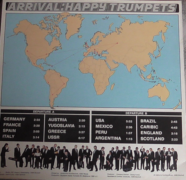€ 6.00 Media: Near Mint (NM or M-)Hoes: Very Good Plus (VG+)Happy Trumpets Chor & Orchester – Mit Der Big Band Um Die Welt (LP, Album)