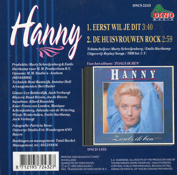 € 5.00 Media: Very Good (VG)Hoes: Very Good (VG)Hanny (2) – Eerst Wil Je Dit (CD, Single)