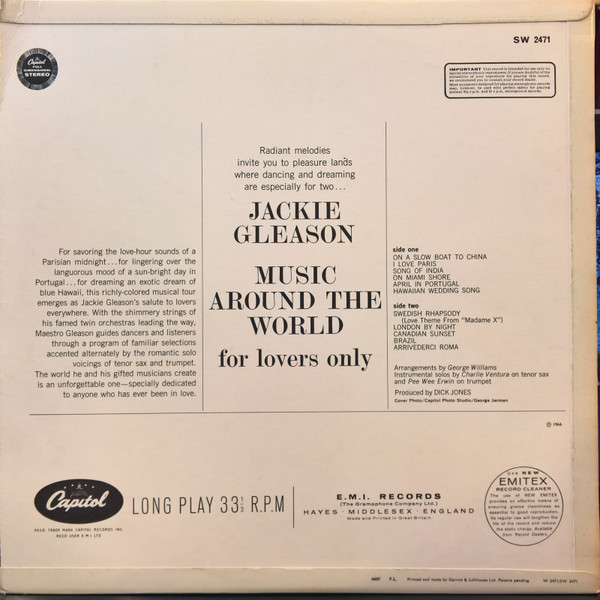 € 7.50 Media: Very Good Plus (VG+)Hoes: Very Good Plus (VG+)Jackie Gleason – Music Around The World For Lovers Only (LP, Album)