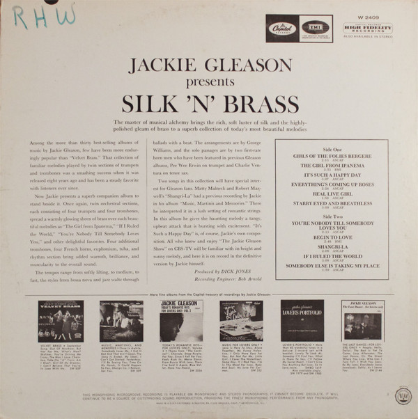 € 4.00 Media: Good Plus (G+)Hoes: Very Good (VG)Jackie Gleason – Silk ‘n’ Brass (LP, Album, Mono)