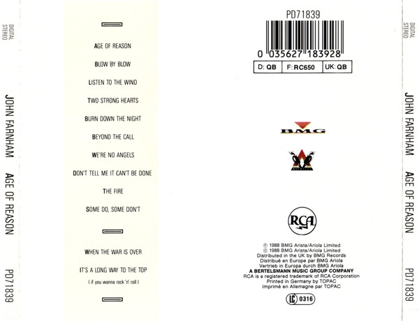 € 5.00 Media: Very Good Plus (VG+)Hoes: Very Good Plus (VG+)John Farnham – Age Of Reason (CD, Album)