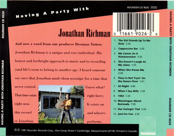 € 9.50 Media: Very Good Plus (VG+)Hoes: Very Good Plus (VG+)Jonathan Richman – Having A Party With Jonathan Richman (CD, Album)