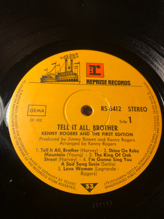€ 7.00 Media: Very Good (VG)Hoes: Very Good (VG)Kenny Rogers & The First Edition – Tell It All, Brother (LP, Album)