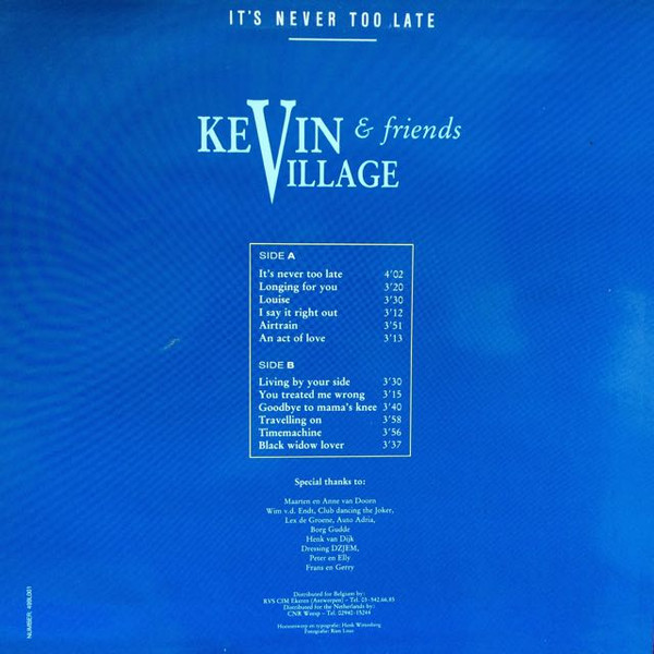 € 10.00 Media: Near Mint (NM or M-)Hoes: Near Mint (NM or M-)Kevin Village – It’s Never Too Late (LP, Album)