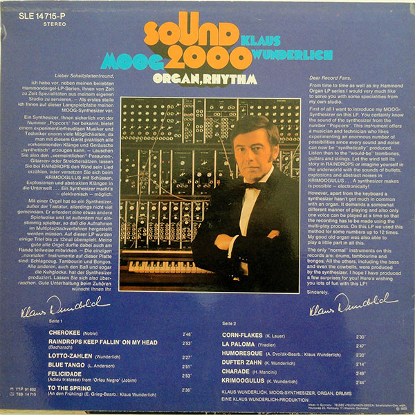 € 5.00 Media: Very Good Plus (VG+)Hoes: Very Good (VG)Klaus Wunderlich – Sound 2000 (Moog-Organ-Rhythm) (LP, Album)