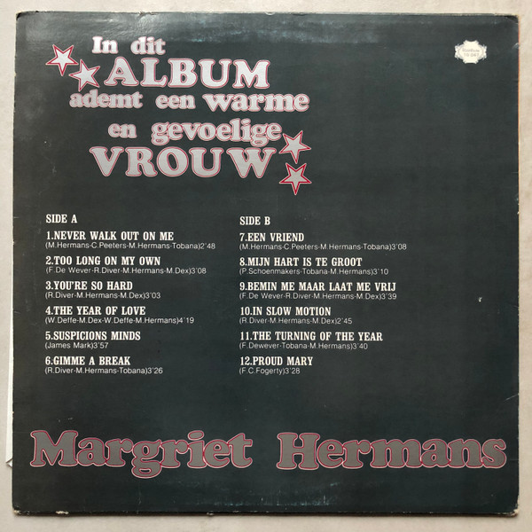 € 6.50 Media: Very Good (VG)Hoes: Very Good Plus (VG+)Margriet Hermans – In This Album Breathes A Warm And Sensitive Woman / In Dit Album Ademt Een Warme En Gevoelige Vrouw (LP)