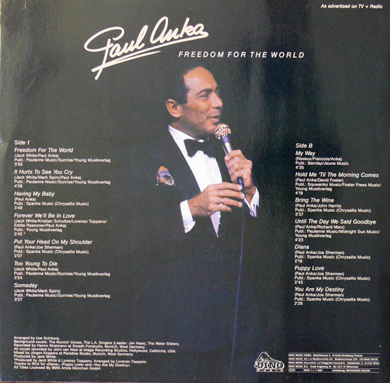 € 6.50 Media: Very Good Plus (VG+)Hoes: Very Good Plus (VG+)Paul Anka – Freedom For The World (LP, Album)
