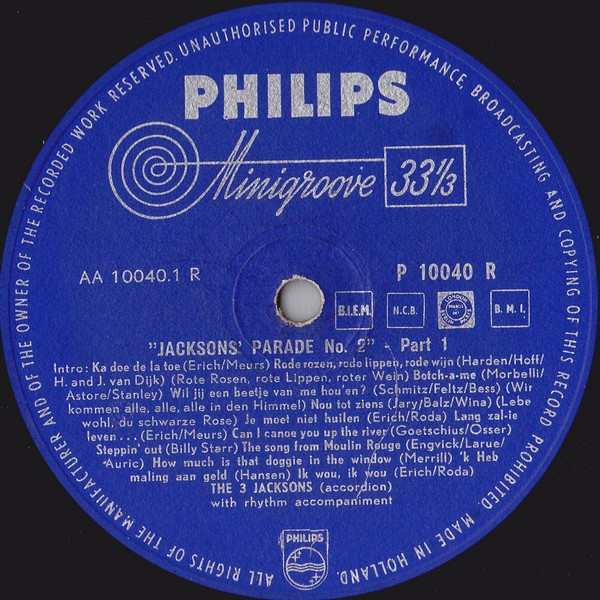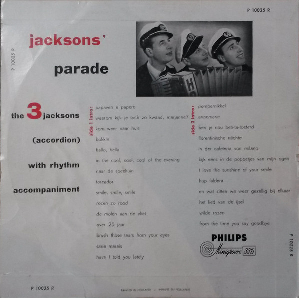 € 5.00 Media: Good Plus (G+)Hoes: Very Good Plus (VG+)The 3 Jacksons – Jacksons’ Parade No. 2 (10″, Album)