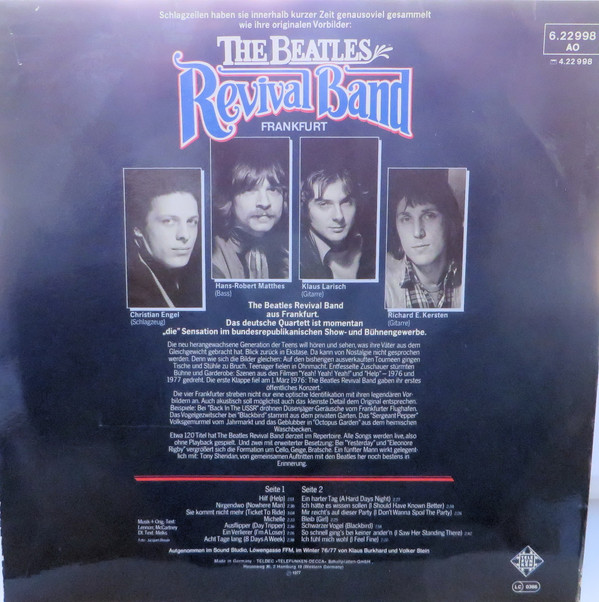 € 6.50 Media: Very Good Plus (VG+)Hoes: Very Good Plus (VG+)The Beatles Revival Band Frankfurt* – Beatles Songs In Deutsch (LP, Album)