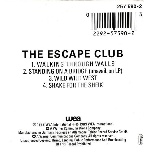 € 6.00 Media: Good (G)Hoes: Very Good (VG)The Escape Club – Walking Through Walls (CD, Mini, Single)