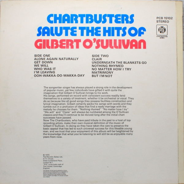 € 26.00 Media: Very Good Plus (VG+)Hoes: Very Good Plus (VG+)The Chartbusters – Salute The Hits Of Gilbert O’Sullivan (LP)
