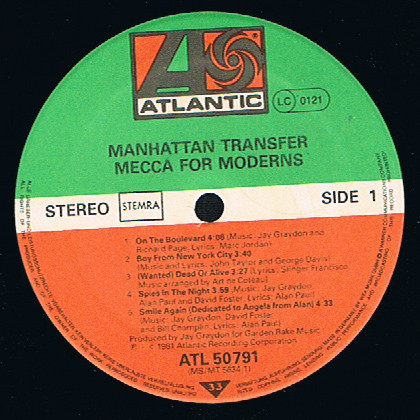€ 5.00 Media: Very Good Plus (VG+)Hoes: Very Good Plus (VG+)The Manhattan Transfer – Mecca For Moderns (LP, Album, SP)