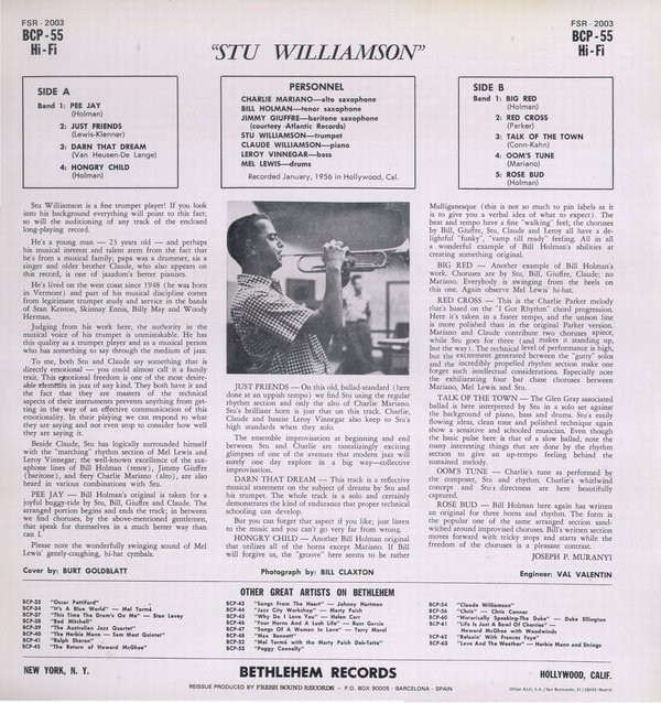 € 5.00 Media: Good Plus (G+)Hoes: Very Good Plus (VG+)Stu Williamson – Stu Williamson (LP, Album, RE)
