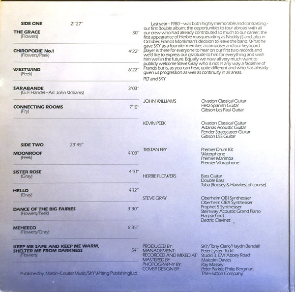 € 7.50 Media: Very Good Plus (VG+)Hoes: Very Good Plus (VG+)Sky (4) – Sky (LP, Album)