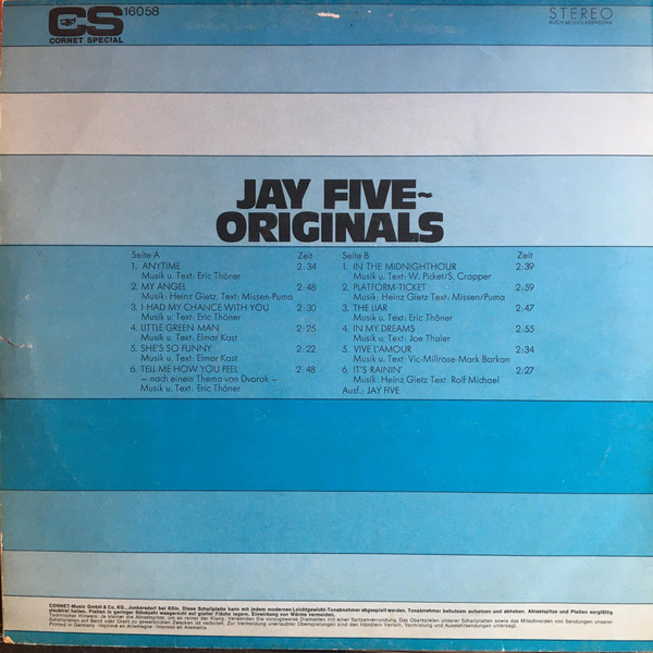 € 4.00 Media: Very Good (VG)Hoes: Very Good (VG)Jay Five* – Originals (LP, Album, RE)