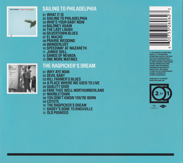 € 2.50 Media: Fair (F)Hoes: Very Good Plus (VG+)Mark Knopfler – Sailing To Philadelphia + The Ragpicker’s Dream (HDCD, Album, RE + CD, Album, RE + Comp)