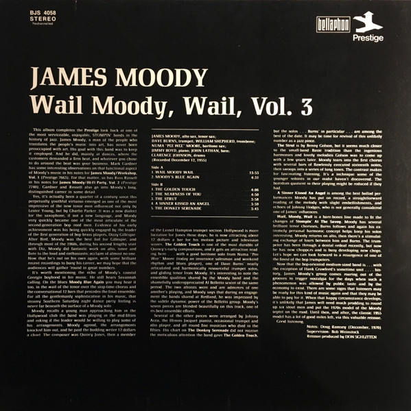 € 10.00 Media: Near Mint (NM or M-)Hoes: Very Good Plus (VG+)James Moody – Wail Moody, Wail, Vol. 3 (LP, Album, RE, RM)