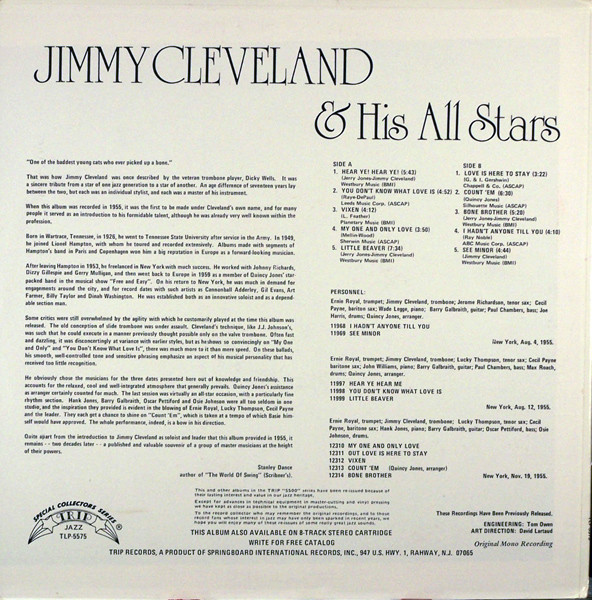 € 11.00 Media: Very Good (VG)Hoes: Very Good Plus (VG+)Jimmy Cleveland – Introducing Jimmy Cleveland And His All Stars (LP, Album, RE)