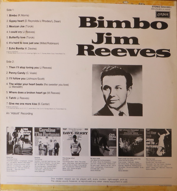 € 16.50 Media: Very Good (VG)Hoes: Very Good (VG)Jim Reeves – Bimbo (LP, Comp, RE)