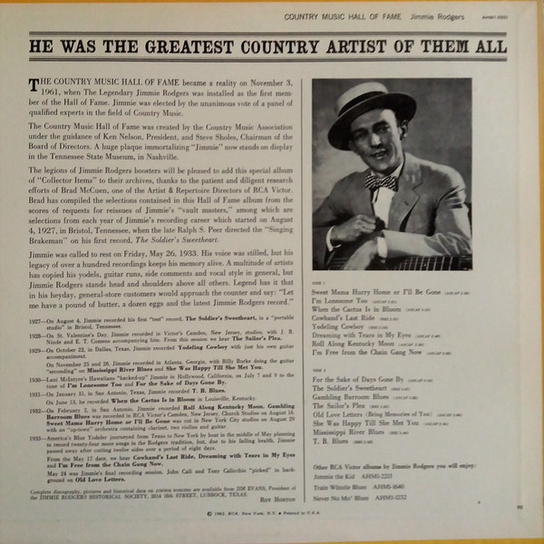 € 19.50 Media: Very Good Plus (VG+)Hoes: Very Good Plus (VG+)Jimmie Rodgers – Country Music Hall Of Fame (LP, RE)