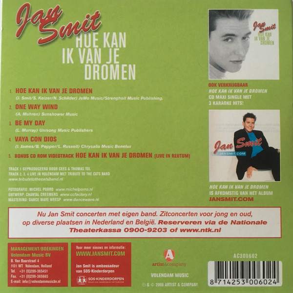 € 5.00 Media: Very Good Plus (VG+)Hoes: Very Good Plus (VG+)Jan Smit – Hoe Kan Ik Van Je Dromen (CD, Single, Enh, RE)