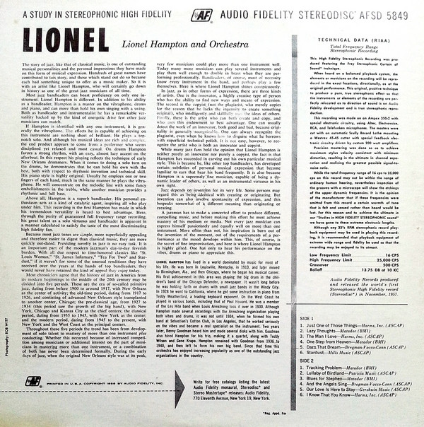 € 5.00 Media: Good Plus (G+)Hoes: Very Good (VG)Lionel Hampton And His Orchestra – Lionel (LP, Album, RE)