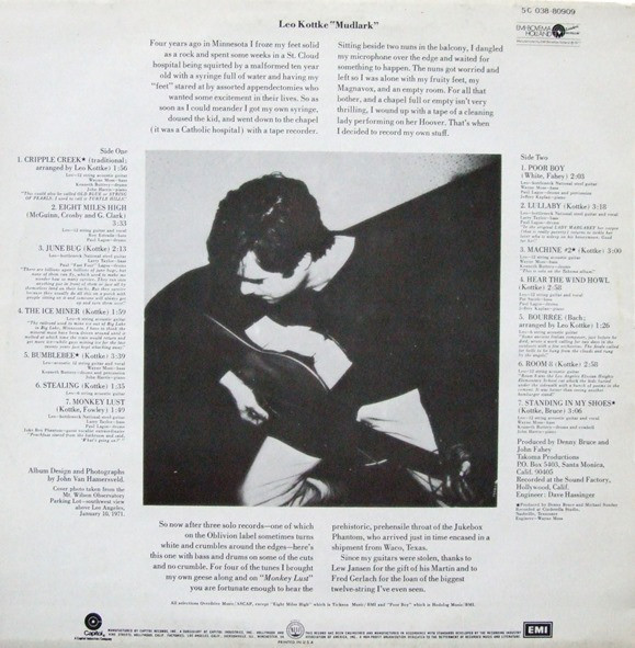 € 6.00 Media: Very Good (VG)Hoes: Very Good Plus (VG+)Leo Kottke – Mudlark (LP, Album, RE)