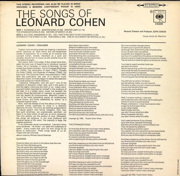 € 7.50 Media: Near Mint (NM or M-)Hoes: Very Good Plus (VG+)Leonard Cohen – Songs Of Leonard Cohen (LP, Album, RE, B P)