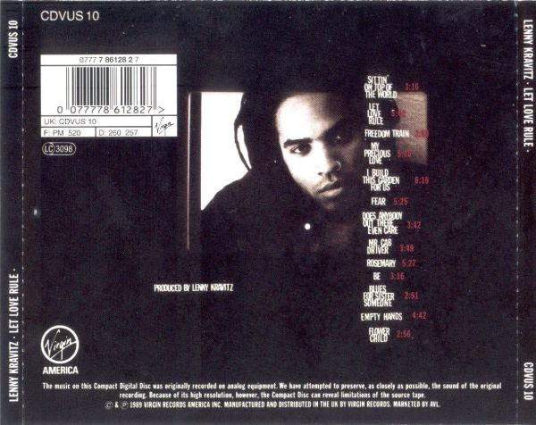 € 7.50 Media: Very Good Plus (VG+)Hoes: Very Good (VG)Lenny Kravitz – Let Love Rule (CD, Album, RE, EMI)
