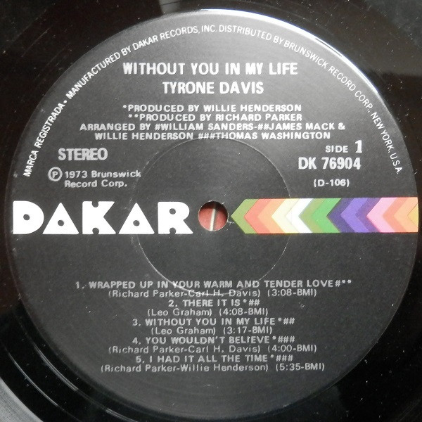 € 35.00 Media: Mint (M)Hoes: Mint (M)Tyrone Davis – Without You In My Life (LP, Album, RE)