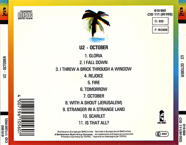 € 2.50 Media: Fair (F)Hoes: Very Good (VG)U2 – October (CD, Album, RE)