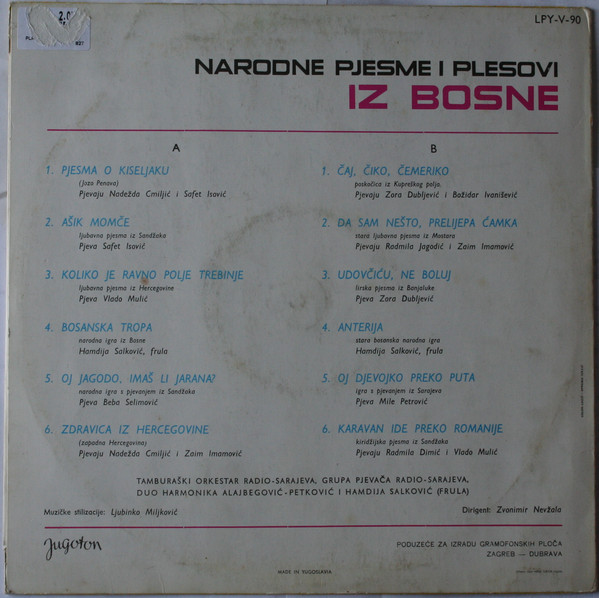 € 5.00 Media: Very Good (VG)Hoes: Very Good (VG)Various – Narodne Pjesme I Plesovi Iz Bosne (Narodne Pjesme I Kola Iz Bosne) (LP, Album, RE)