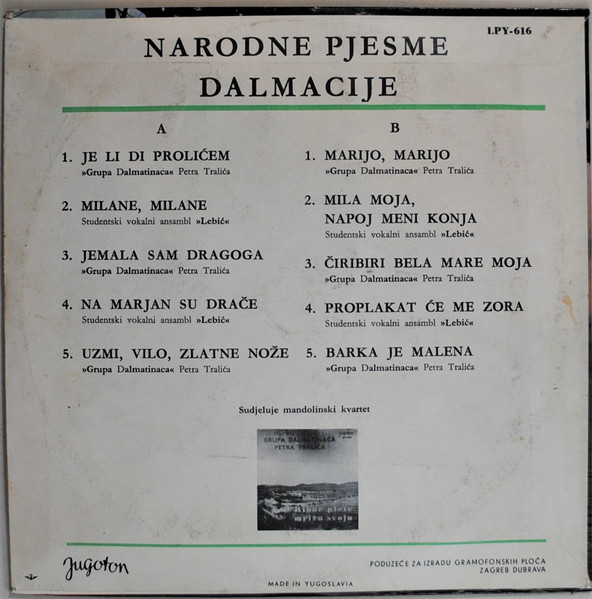 € 4.50 Media: Very Good (VG)Hoes: Very Good (VG)Various – Narodne Pjesme Dalmacije (10″, Album, RE)