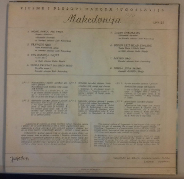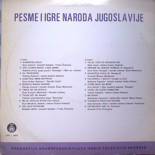 € 6.50 Media: Very Good (VG)Hoes: Very Good (VG)Various – Pesme I Igre Naroda Jugoslavije = Yugoslav Folk Songs And Dances (LP, Comp, RE)