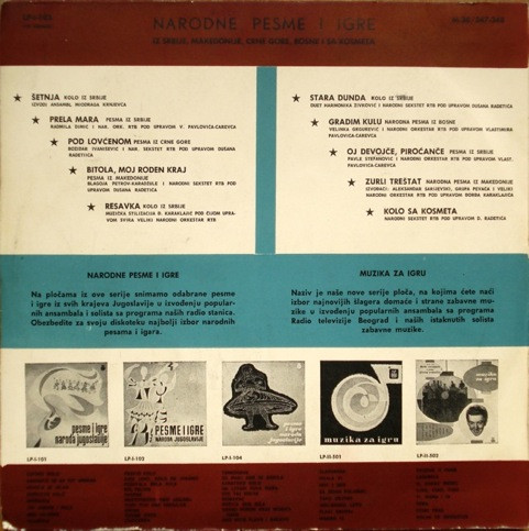 € 6.00 Media: Very Good Plus (VG+)Hoes: Very Good (VG)Various – Pesme I Igre Naroda Jugoslavije (Iz Srbije, Makedonije, Crne Gore, Bosne I Sa Kosmeta) (10″, Comp, RE, 4th)