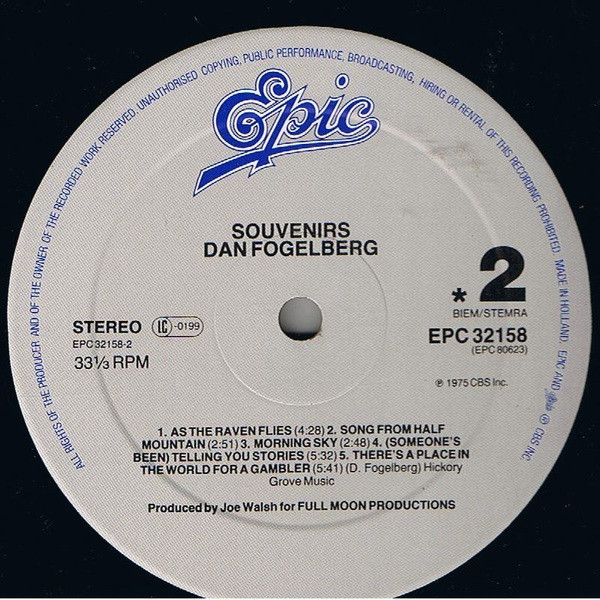 € 5.00 Media: Very Good (VG)Hoes: Very Good Plus (VG+)Dan Fogelberg – Souvenirs (LP, Album, RE, Gat)