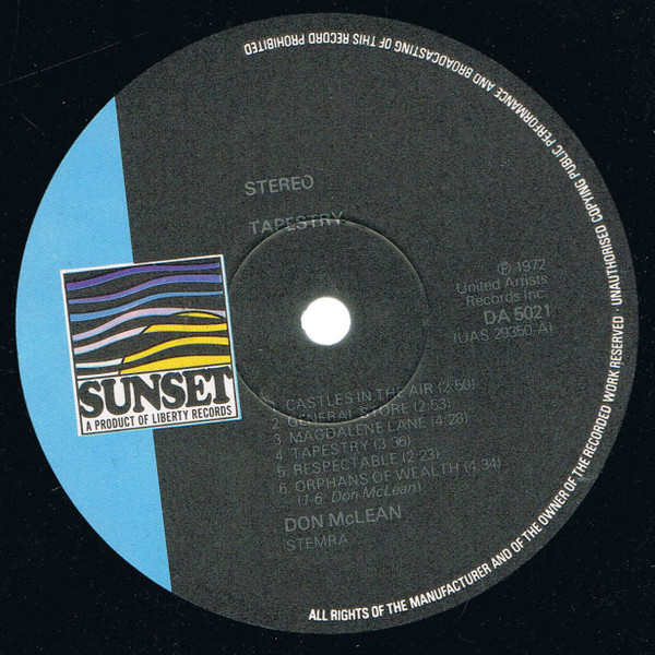 € 9.00 Media: Very Good Plus (VG+)Hoes: Very Good Plus (VG+)Don McLean – Tapestry (LP, Album, RE)