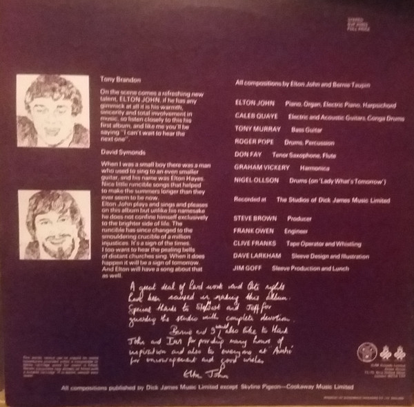 € 10.00 Media: Very Good Plus (VG+)Hoes: Very Good (VG)Elton John – Empty Sky (LP, Album, RE, Gat)