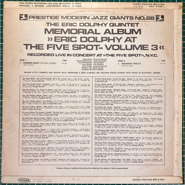 € 3.50 Media: Good Plus (G+)Hoes: Very Good Plus (VG+)Eric Dolphy & Booker Little – Memorial Album Recorded Live At The Five Spot (LP, Album, RE)