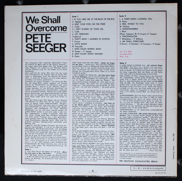 € 5.00 Media: Very Good (VG)Hoes: Very Good (VG)Pete Seeger – We Shall Overcome (LP, Album, RE, Red)