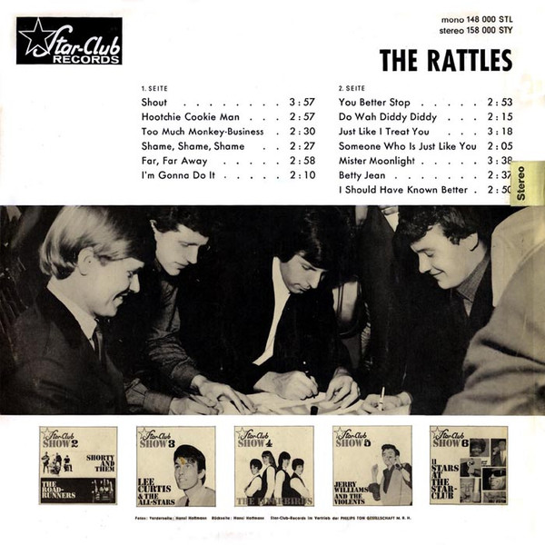 € 6.50 Media: Very Good (VG)Hoes: Very Good Plus (VG+)The Rattles – Star-Club Show 1 (LP, Album)