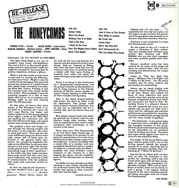 € 6.00 Media: Very Good (VG)Hoes: Very Good Plus (VG+)The Honeycombs – The Honeycombs (LP, Album, RE)