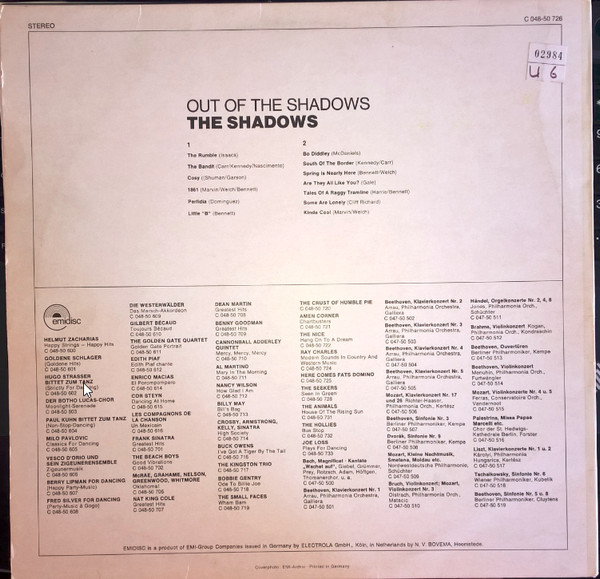 € 4.00 Media: Good Plus (G+)Hoes: Very Good Plus (VG+)The Shadows – Out Of The Shadows (LP, Album, RE)