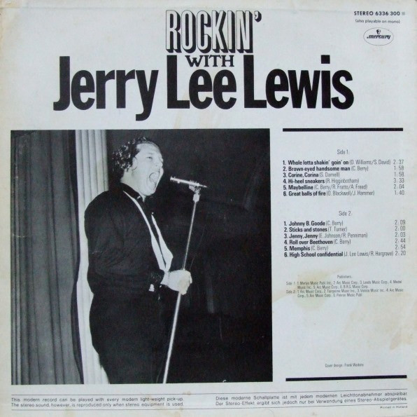 € 7.50 Media: Near Mint (NM or M-)Hoes: Very Good Plus (VG+)Jerry Lee Lewis – Rockin’ With Jerry Lee Lewis (LP, Comp)