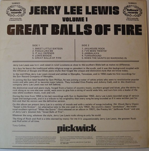 € 6.50 Media: Very Good (VG)Hoes: Very Good (VG)Jerry Lee Lewis – Great Balls Of Fire (Volume 1) (LP, Comp, Lig)