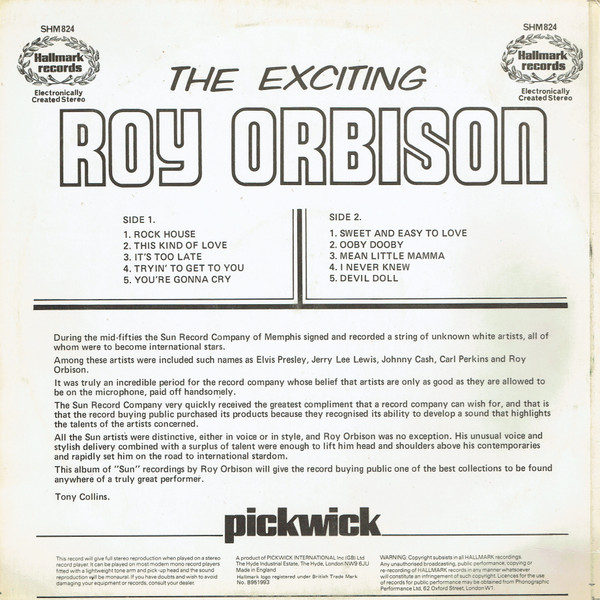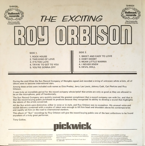 € 9.00 Media: Near Mint (NM or M-)Hoes: Very Good Plus (VG+)Roy Orbison – The Exciting Roy Orbison (LP, Comp, RM, USA)