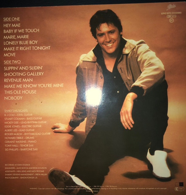 € 5.00 Media: Very Good (VG)Hoes: Very Good Plus (VG+)Shakin’ Stevens – Shaky (LP, Album)