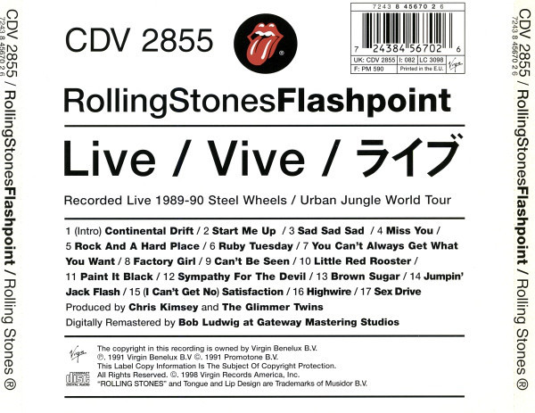 € 3.00 Media: Very Good Plus (VG+)RollingStones* – Flashpoint (CD, Album, RE, RM)